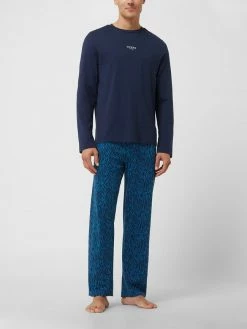 Der Pyjama von GUESS ist aus reiner Baumwolle gefertigt und locker geschnitten. Er zeigt sich mit Rundhalsausschnitt, Logo-Print und elastischem Hosenbund.