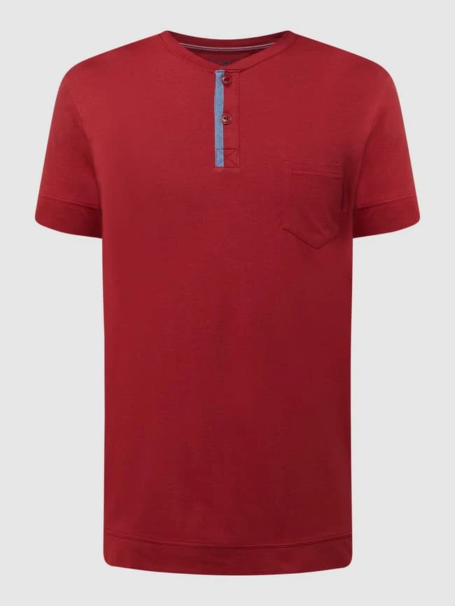 Das Pyjama-Oberteil von JOCKEY ist aus einem Baumwoll-Modal-Mix gefertigt und gerade geschnitten. Es kommt mit Serafino-Ausschnitt und Brusttasche.