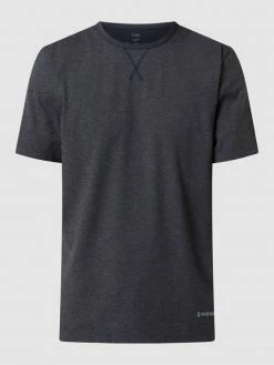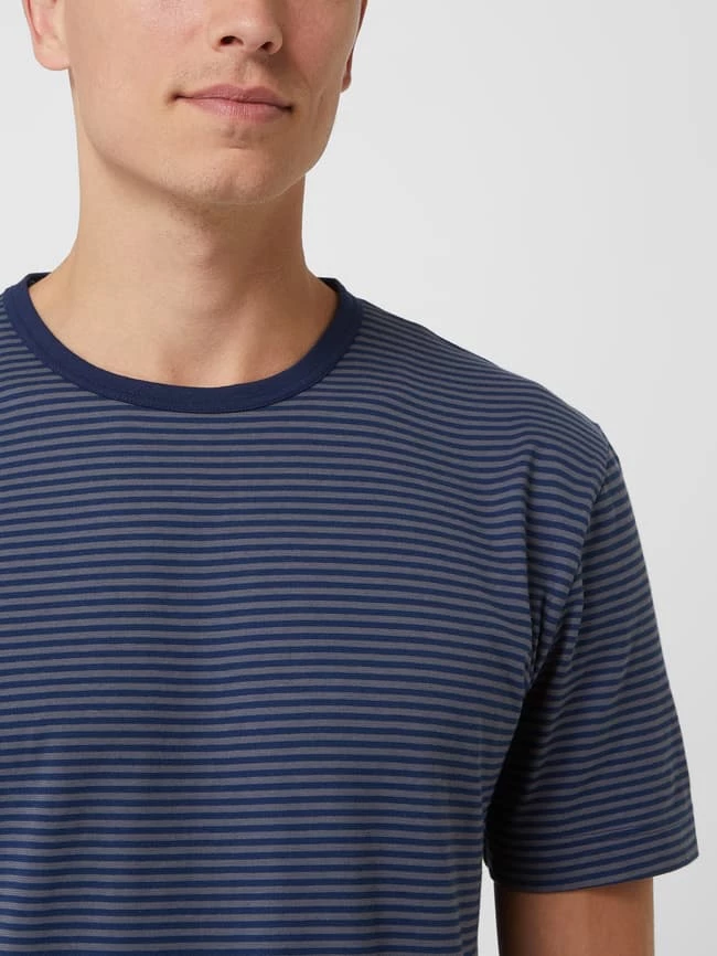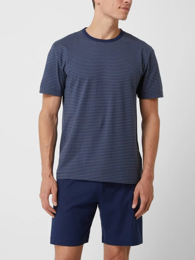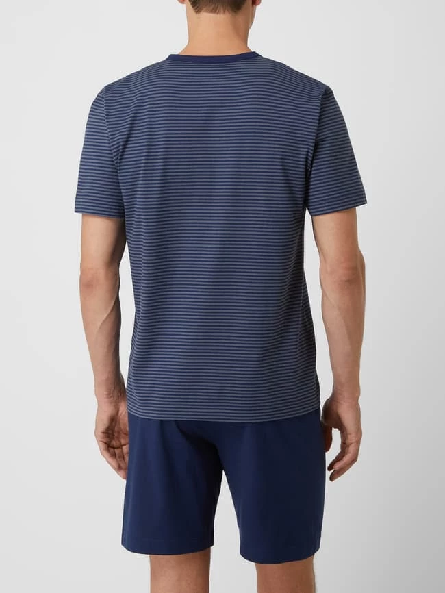 Der Pyjama von Mey ist aus reiner Baumwolle gefertigt. Das Oberteil zeigt sich mit Streifenmuster und Rundhalsausschnitt.