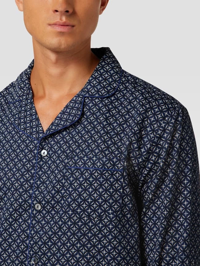 Der Pyjama von SCHIESSER ist aus reiner Baumwolle gefertigt und gerade geschnitten. Er zeigt sich mit Allover-Muster, Hose mit elastischem Bund und Oberteil mit durchgehender Knopfleiste.