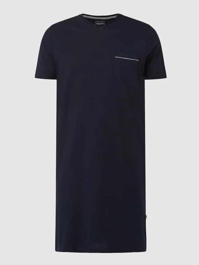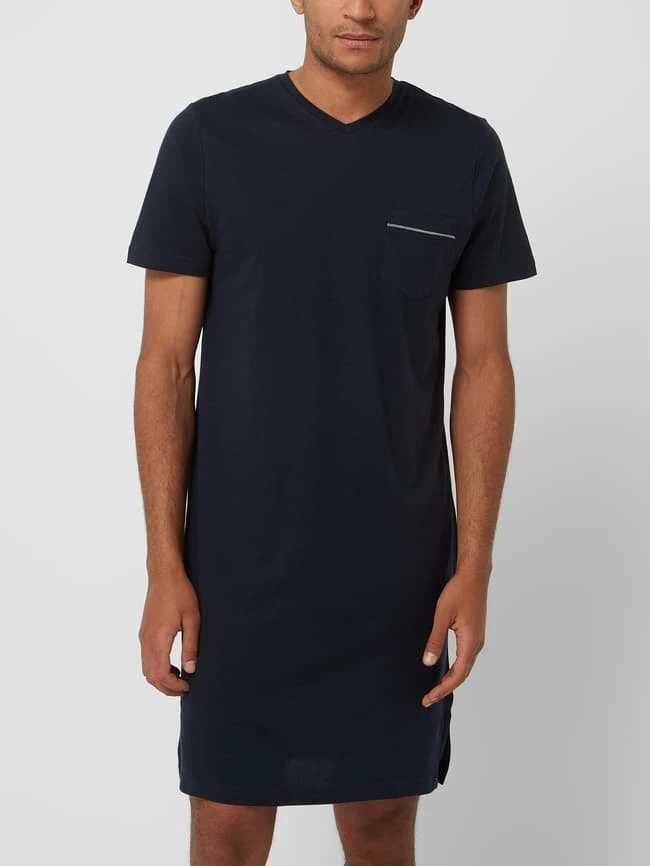 Das Nachthemd von Seidensticker ist aus einem Baumwoll-Viskose-Mix gefertigt. Es kommt in lockerer Passform mit V-Ausschnitt, Brusttasche und Seitenschlitzen.