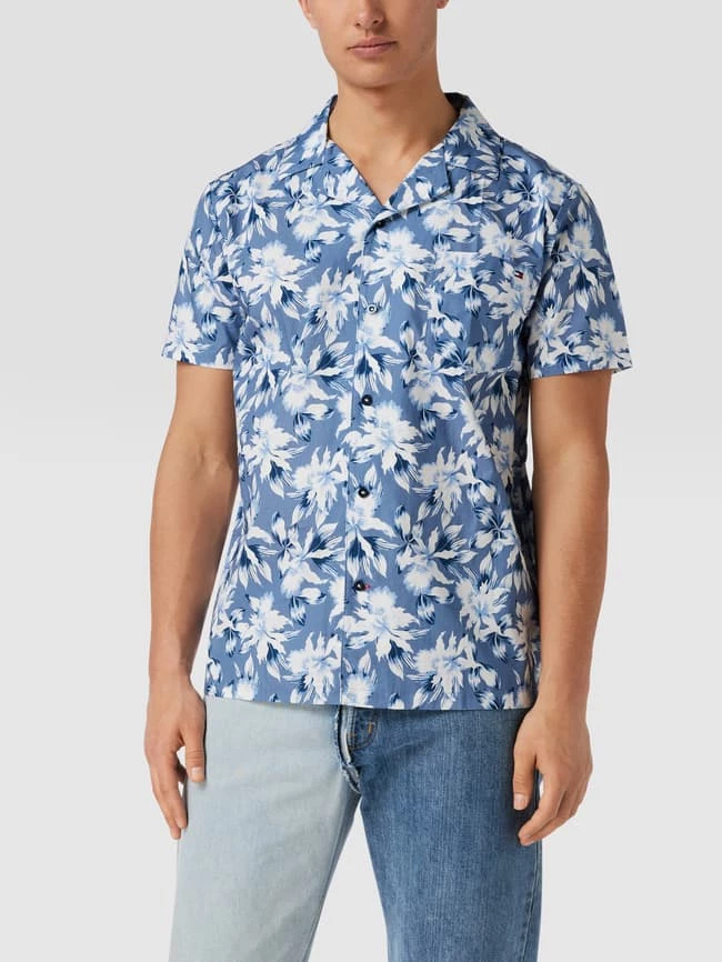 Das Pyjama-Oberteil von Tommy Hilfiger ist aus reiner Baumwolle gefertigt und kommt im Regular Fit. Es zeigt sich mit Reverskragen und floralem Allover-Muster sowie Brusttasche mit Label-Stitching.
